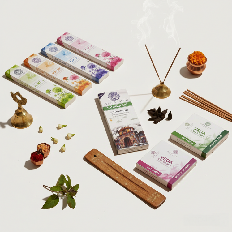 Ayesha Divine Floral Essence Collection β Premium Backflow Incense Cones (60 Cones, 4 Fragrances)