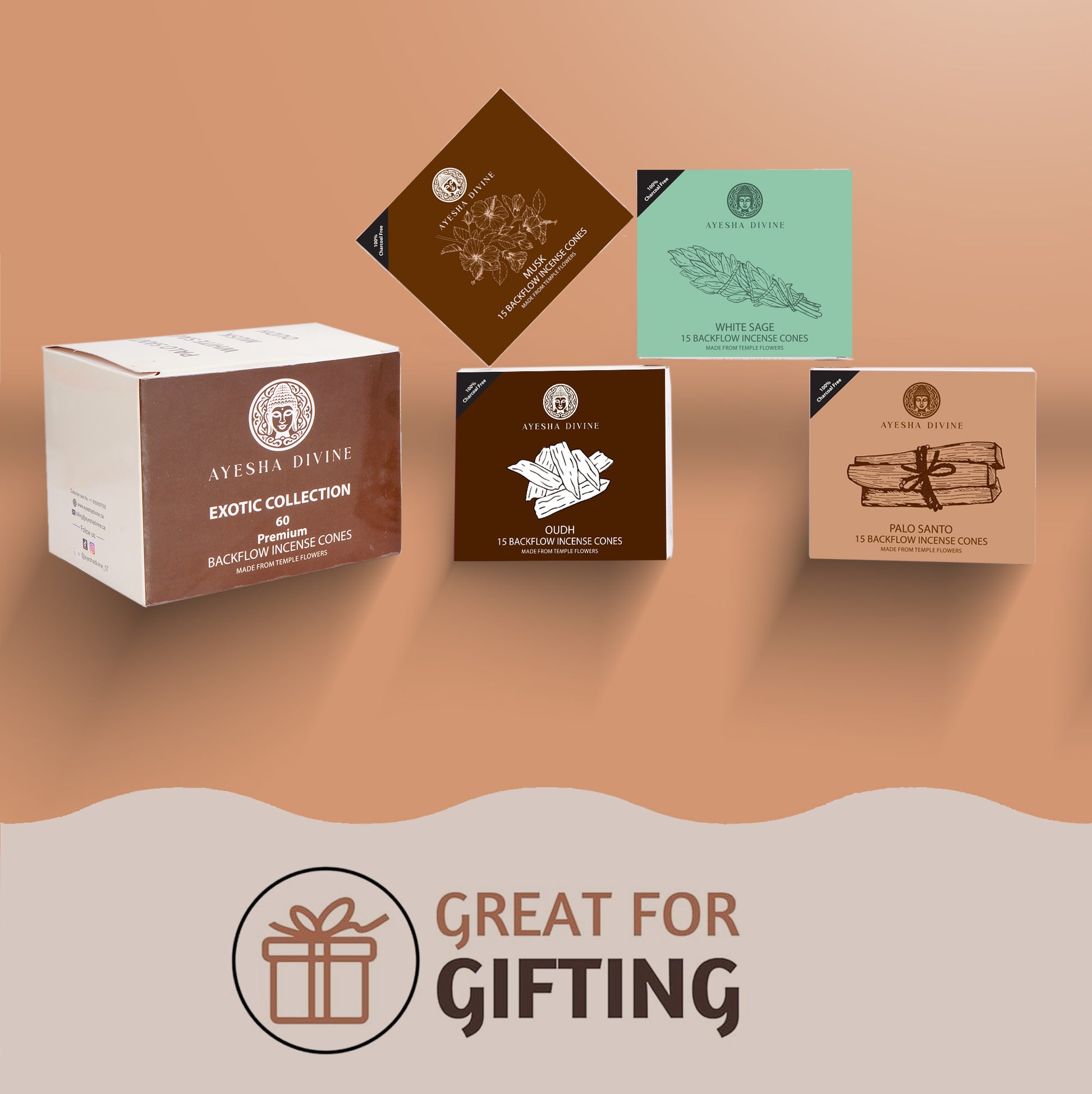 Ayesha Divine Exotic Collection – Premium Backflow Incense Cones (60 Cones, 4 Fragrances)